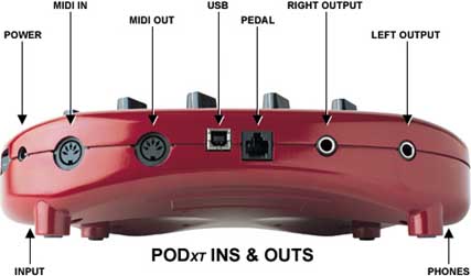 POD XT оснащен всеми необходимыми интерфейсами для записи и коммутации с другими приборами. Высококлассные 24-битные конверторы и 32-битная обработка с плавающей запятой позволяют получить супер качественное звучание. Уровни и тип выходного аналогового сигнала могут варьироваться (+4dBu симметричный или -10dBV несимметричный, 1/4" Jack разъемы). Цифровой USB интерфейс позволяет передавать аудио поток с разрядностью 24бит/48кГц в персональный компьютер. POD XT также полностью MIDI совместим и имеет встроенные разъемы MIDI вход и MIDI выход.