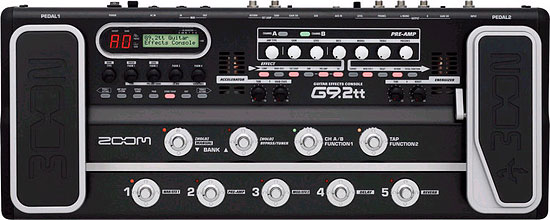 ZOOM G9.2tt - представитель технологически абсолютно новой линейки приборов серии G на базе нового оригинального 32-битного DSP-чипа ZFX-3 (обеспечивающего 24-битную конвертацию аналогового сигнала в цифровой на входе прибора и обратную - на выходе), производство которой было начато в 2005 г. моделью G2. Но, в отличие от "младшей" модели, G9 является гораздо более функционально продвинутым. Мало того, схемотехническое решение этого процессора имеет одну немаловажную особенность: в аналоговую часть схемы включены 2 лампы 12AX7, которые, при включенной функции Energizer, не только добавляют богатство обертонов, свойственных "ламповому" звуку, к перегрузке, но и влияют на выходной сигнал в целом. Неважно идет ли речь о стандартном линейном выходе прибора или передаче данных на персональный компьютер по шине USB. Из других новаций, воплощенных в G9.2tt, стоит отметить следующие: