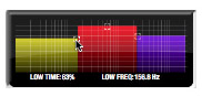 Вы можете регулировать настройки эквалайзера графически: перетаскивая точки контроля с большого графика во вкладку эквалайзера, как показано выше, или используя ручки для настройки диапазона для каждой канальной полосы.
