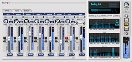 CueMix FX это совершенно новое программное обеспечение с внешним интерфейсом, заключающим в себе функции графического микширования, графического редактирования параметрического эквалайзера и удобный интерфейс с вкладками для быстрого доступа ко всем функциям для микширования, цифрового управления ручками и других установок вашего MOTU FireWire аудиоинтерфейса.