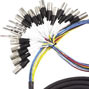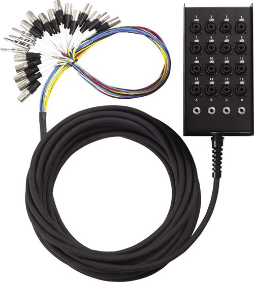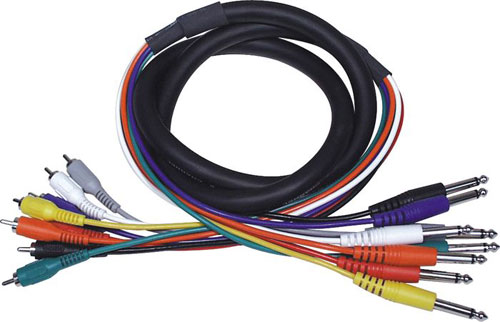 | Многоканальные кабели (Snakes, или «мультикоры», «мультикорные кабели»): состоят из нескольких одиночных кабелей, заключенных в одну мощную общую изоляционную оболочку. Они применяются для многоканальной передачи аналоговых и цифровых сигналов, чаще всего на большие расстояния. Кроме одиночных кабелей, в этой оболочке может находиться пластиковый или текстильный шнур, придающий мультикорам механическую прочность. Также этим шнуром удобно привязывать конец мультикора к раме коммутационной панели, например. Одиночные кабели в мультикорах могут быть всех трех типов. «Змеи» сценические могут содержать в себе микрофонный, соединительный и кабели для громкоговорителей и используются для двусторонней связи между сценой и удаленным микшерным пультом звукорежиссера. Они могут иметь целый веер различных разъёмов на одном конце, и коробку на конце «сценическом», которая представляет собой соединительную панель с «гнёздами». Существует также тип мультикоров для студий, где разделение различных кабелей необходимо для подключения студийного оборудования. Экранирование и изоляция одиночных кабелей могут быть как индивидуальными, что хорошо, так и общими, что плохо из-за невозможности разделения общих проводов для отдельных каналов передачи. Это стоит учитывать при покупке многоканальных кабелей, помимо основных параметров: длины и типа соединений. | |