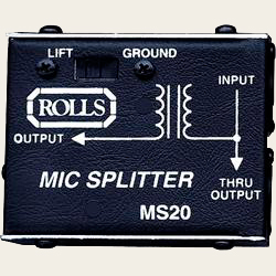 Rolls MS 20, например, является одноканальным микрофонным сплиттером. Устройство имеет симметричный микрофонный вход на разъеме XLR и два развязанных трансформаторами симметричных микрофонных выхода на разъемах XLR. Кроме разъемов есть переключатель Ground/Lift, который отключает земляные контакты выходных разъемов от земли входа.