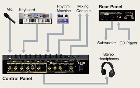 Roland KC-150 - это 4-канальный клавишный комбо усилитель со стерео микшером мощностью 65 Вт, может работать с 4мя моно-входами. Он оснащен дополнительным входом RCA для подключения проигрывателей КД и МД и микрофонным входом XLR для добавления вокала или акустической гитары. Кроме того, имеется дополнительный вход для подключения проигрывателей компакт-дисков.