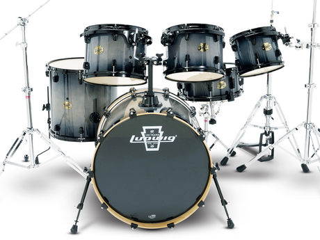 Установка Ludwig Element Laquer Series Power состоит из бочки 22"x18", малых томов 12"x9", 13"x10", 10"x8, напольного тома 16"x16", рабочего барабана 14"x6.5". Корпусы барабанов выполнены из смеси березы и тополя - внешний и внутренний твердый слой прослаиваются более мягкой серединой. В комплекте, естественно, и все необходимые для установки аксессуары - стойки, крепления, ключи и пр.