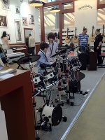 Вчера, 16 мая, прошел первый день работы выставки NAMM Musikmesse Russia. Если не считать накладки в виде отмены выступлений музыкальных групп на открытой сцене, все прошло запланировано. Для посетителей-музыкантов это просто рай: все можно потрогать собственными руками, поиграть на любом инструменте, получить квалифицированную консультацию на стендах фирм-производителей и музыкальных магазинов. Правда, при этом придется как-то смириться с царящей в павильоне Форум какофонией, что, думаем, не является для посетителей такой уж большой "платой". Кроме того, всегда можно скрыться от шума в павильонах выставки светового оборудования Prolight + Sound NAMM Russia и в конференц-залах, в которых проходит большое количество интересных лекций и мастер-классов. Публику к своим стендам привлекают выступлениями музыкантов, проведением конкурсов и розыгрышей.
