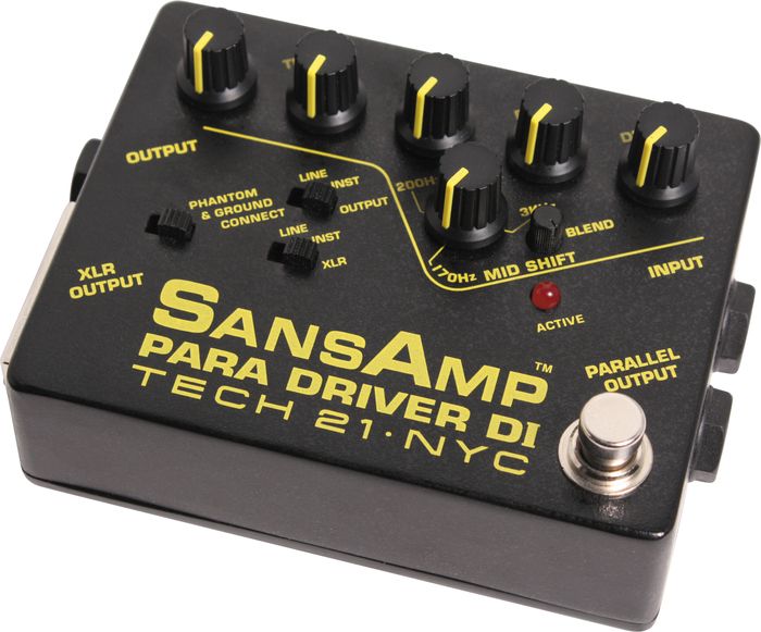 Tech 21 SansAmp Para Driver DI - напольная версия рэкового иснтрументального предусилителя SansAmp RPM. Эту педаль можно использовать с акустическими, электро и бас-гитарами, ее можно подключать как к инструментальным усилителям, так и напрямую к микшерным пультам или устройствам записи звука. Para Driver DI придаст звучанию инструмента естественную теплоту, характерную для ламповых предусилителей. Схема SansAmp устраняет резкие неестесвенные призвуки пьезозвукоснимателей. Особенности: активный контроль тона, полупараметрический эквалайзер, выходы XLR и 1/4".