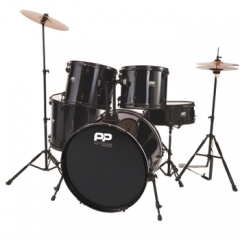 Полноразмерная установка PP225BLK поставляется в полностью черным. В нее входят: 22 "х 16" бас-барабан, 16 "х 16" напольный том, 13 "х 11" Tom Tom, 12 "х 10" Tom Tom, 14 "х 5,5" рабочий барабан, 12 " Hi-Hat и 14 "Crash тарелки, а также регулируемый стул для барабанщика, барабанный ключ, барабанные палочки и инструкция по сборке.