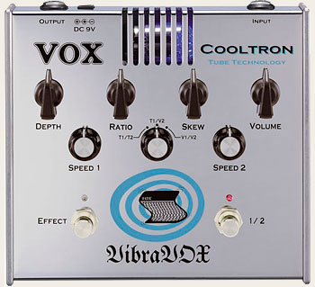 Унаследовавшая название от самой первой схемы тремоло, использованной в усилителях VOX, педаль VibraVOX воссоздает уникальные эффекты вибрато/тремоло классических моделей AC30. Для большей гибкости управления мы добавили в конструкцию педали дополнительные регуляторы. Два регулятора частоты Speed и переключатель назначения эффектов (T1/T2, T1/V2, V1/V2) предоставляют пользователям новые возможности настройки тембра. Кроме того, по выбору пользователя VibraVOX может быть сконфигурирована как двухскоростное вибрато/тремоло или как эффект с переключением из режима тремоло в режим вибрато с одной скоростью работы. Последняя черта – плавная автоматическая смена частоты, придающая звучанию характерный привкус эффекта вращающегося динамика.