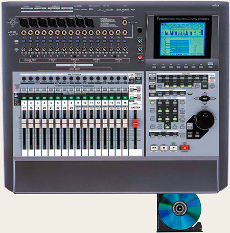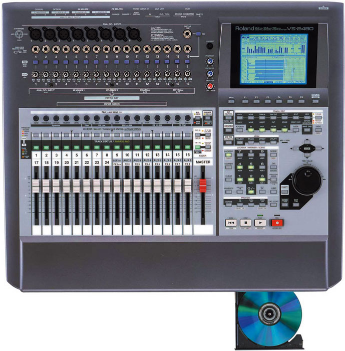 Roland VS-2480 CD - это 24-канальная цифровая рабочая станция, которая содержит все необходимые инструменты для 24-канальной 24-битной цифровой записи с 64-канальным цифровым микшированием, встроенными эффектами. Большой жидкокристаллический монитор (1/4 VGA) и разъем для подключения внешнего монитора VGA доводят удобство и наглядность работы до уровня программных систем на основе компьютеров; дополнительно поставляется клавиатура ASCII. Таким образом, VS-2480 CD стоит в уникальном положении, совмещая надежность "железных" приборов и удобство программного обеспечения. отличается от модели VS2480 наличием встроенного привода CD-RW для прожигания аудио CD и для архивирования данных. Наряду с импортом и экспортом WAV-файлов поддерживается также импорт треков аудио CD, в том числе частями.