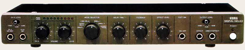 Korg SD-400 analog signal delay - винтажный процессор эффектов. Аналоговая задержка с реалистичными эхо и естественное звучание реверберации, для выразительных эффектов зыби. Процессор может обрабатывать два входа: канал B - только для микрофонного уровня и канал А для обработки широкого спектра уровней сигнала. Светодиодный индикатор уровня пика позволяет легко регулировать необходимые показатели даже при тусклом освещении. Отношение сигнал/шум было значительно улучшено благодаря использованию специальной схемы подавления шумов.