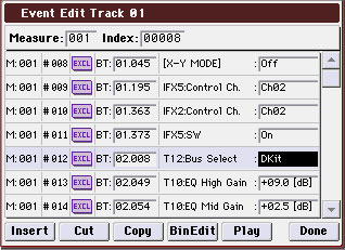 Теперь в диалоговом окне Event Edit режима секвенсора вы можете просматривать информацию о записанных SysEx-событиях. Данные отображаются в виде оригинальных наименований параметров, что значительно упрощает работу с ними. Вы также можете редактировать значения этих параметров, что даёт вам поистине полный контроль над вашей музыкой. С помощью команд Create/Erase Exclusive Data вы можете с лёгкостью вносить новые изменения.
