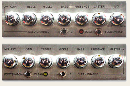 Предусилитель имеет две секции, или каналы. Это традиционные каналы: 1. - перегруз, 2 - "чистый звук", а точнее условно чистый звук. Эти два независимых канала имеют раздельные регуляторы высоких, низких, средних, регулятор презенс, громкость и гейн (плотность перегруза).