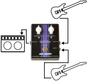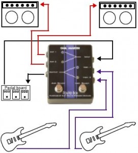 – это двойной переключатель A/B типа. Педаль нужна, когда есть один педалборд, два усилителя и две гитары. С помощью этой педали модно выбирать какая гитара в какой усилитель будет звучать.
