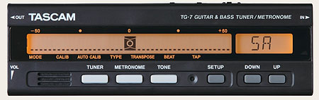 Согласно пресс-релизу компании Tascam, TG-7, их новый тюнер/метроном "сочетает в себе быстрое обнаружение и удобный ЖК-дисплей для настройки гитары и баса".