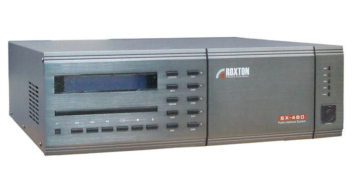 ROXTON SX-480 - многофункциональное устройство для построения многозонной системы аварийного оповещения и музыкальной трансляции; имеет встроенный DVD-проигрыватель (DVD/CDA/VCD/MP3 форматы), цифровой FM/AM тюнер, cелектор на 5 зон (с возможностью регулировки громкости по каждой зоне), дисплей.