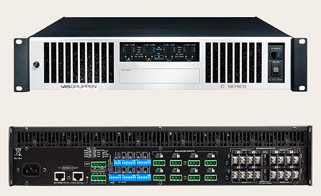 В C Series предусмотрены импульсные блоки питания, система охлаждения Intercooler, индивидуальная настройка пикового напряжения на выходах, переключение в мостовой режим и детальная регулировка чувствительности. Усилители работают как с обычной нагрузкой, так и с линиями 70/100 В. На каждом канале предусмотрена защита по напряжению, по току, от перегрева и от КЗ.