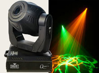 При покупке «вращающейся головы» обращайте внимание на качество оптики, число цветов и количество типов гобо. Более дорогие Moving head включают вращающиеся гобо, призмы и набор различных цветовых барабанов. Эти функции дадут вам полный контроль над всеми параметрами и позволят создавать сложные эффекты. При этом важно, чтобы последовательность всех эффектов могла быть запрограммирована в контроллере, так как, по сравнению с описываемыми до этого приборами, управление «вращающимися головами» – довольно сложное для неопытного пользователя дело. Ниже приведен пример некоторых возможностей, предоставляемых «вращающимися головами», такими как Chauvet Q-Spot.