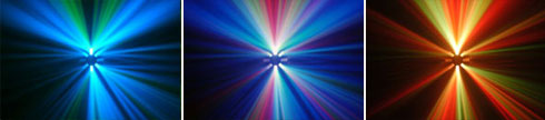 зависимости от полученных звуков во встроенном микрофоне (например, меняя направление с каждым ударом барабанов). При использовании в сочетании с генераторами тумана, цветные лучи чрезвычайно эффективны.