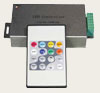 Контроллеры с ПДУ -IR и с инфракрасными сенсорами позволяют управлять освещением только в пределах прямой видимости (10-15м), это их единственный недостаток. Зато имеется масса преимуществ: простота и дешевизна конструкции, тонкий, элегантный пульт ДУ с большим количеством кнопок, возможностью прямого выбора статических и динамических программ (путем нажатия на одну кнопку – вместо последовательного перебора всех программ). Кроме этого, большинство моделей контроллеров имеют выносной инфракрасный датчик на проводе длиной 20см, что позволяет скрыть контроллер, оставив в пределах прямой видимости только датчик.