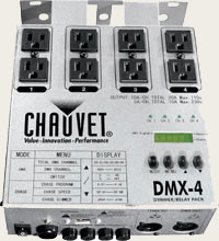 Реле позволяет пользователям управлять не DMX устройствами с помощью контроллера DMX. Пакетное реле содержит несколько разъемов, каждый из которых соответствует каналу DMX. Когда устройства подключаются к этому пакетному реле, реле служит источником питания для них. Эти приборы либо "включены", либо "выключены". Функция реле – контроль за сигналом. Как только ползунок DMX контроллера поднимается вверх, определенное значение будет включено на реле, что заставит включиться световое оборудование.