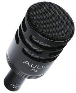 AUDIX D6 - инструментальный микрофон для бас-барабана, басовых комбо, перкуссии. Имеет крадиоидную характеристику направленности, высокую чувствительность в низкочастотной области: нижний диапазон частот ограничен 30-мя Герцами. Рабочий диапазон от 30Гц до 15кГц позволяет отлично и натурально передавать атаку бас-барабана.