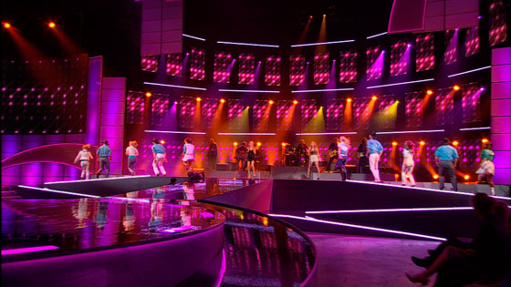 Приборы MAC Aura также использовались для оформления зрительного зала, и вот как Роберт прокомментировал эту часть своей работы: «Благодаря этим замечательным приборам мы смогли получить уровень освещенности и насыщенности цвета, необходимые для качественной телевизионной картинки».