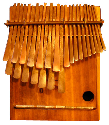 Игрушечное пианино, часто называемое "Мбира" или "Калимба", является мелодичным инструментом с «клавишами» из уплощенных гвоздей или другого металла и телом из тыквы или резного дерева.