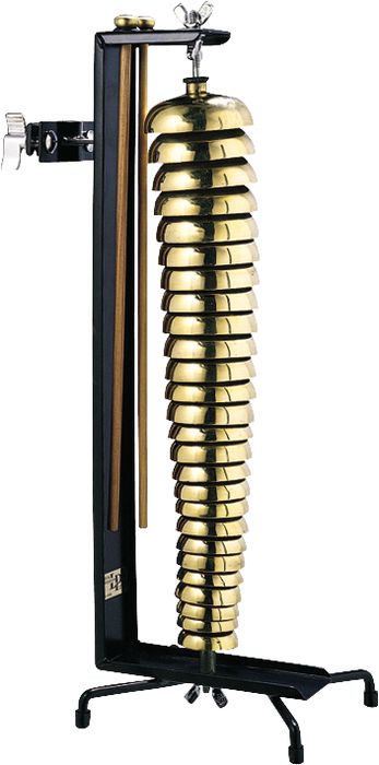 - Колокольное дерево состоит из большого количества латунных колоколов, закрепленных на вертикальном столбе, по которым можно ударять или играть глиссандо для создания различных эффектов.