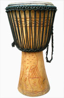 Джембе, большой барабан в форме кубка, как полагают, появился у народа Мандинка в Западной Африке. В последнее время Джембе приобрел большую популярность на Западе, так как это очень динамичный барабан, охватывающий широкий диапазон тонов от весьма глубокого баса до высоких щелчков. Джембе – довольно громкий барабан, поэтому его хорошо слышно в общей массе инструментов. А еще он очень прост в транспортировке. Традиционные Джембе обычно вырезаны из дерева и обтянуты козьей кожей, а в современных Джембе могут использоваться синтетические материалы, как для тела, так и для головы барабана. Обычно на Джембе играют руками, хотя иногда одной рукой и одной палочкой.