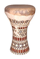 Домбек (также называют думбек, думбак, дарбука, дербеки, табла или томбек) - это самый популярный ближневосточный барабан. При игре барабан находится в горизонтальном положении, играют на нем руками и пальцами. Этот барабан в форме кубка способен на широкий динамический диапазон тонов.