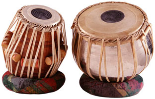 В индийской классической музыке и музыке кино используется широкий спектр ручных барабанов, самым известным из которых является табла. Табла состоит из двух барабанов, которые называются табла и байя. Табла или Даян (обычно правый) – это меньший из двух барабанов, он выдает более высокие тона и сделан из дерева. Больший барабан (обычно левый) – это байя, он, как правило, сделан из меди или латуни. Оба барабана обтянуты многослойной козьей кожей с черной заплаткой из рисового клея, оксида железа и других ингредиентов, придающих табла особое звучание. На этих барабанах играют пальцами и руками, но техника игры довольно сложна. Среди многих других индийских барабанов известны такие, как: пакхавадж, мриданг, кхол и гхатам.