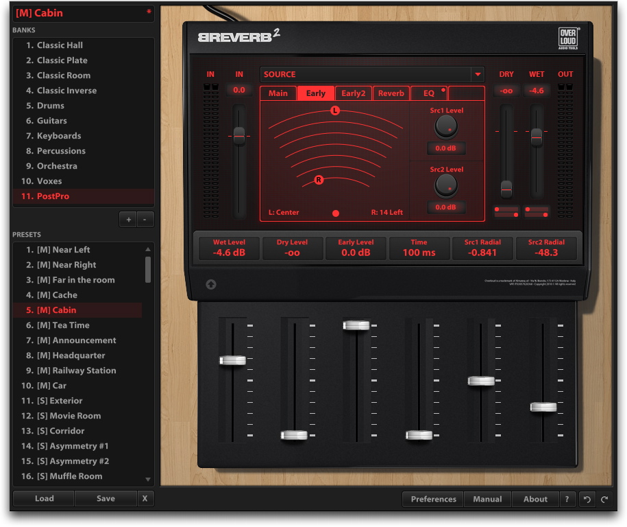 Overloud имеют отличную репутацию в области алгоритмов, поэтому нет ничего удивительного в том, что их Breverb2 считается одним из топовых ревербераторов из-за его качества, гибкости и нетребовательности к ресурсам. Кроме отлично выполненных алгоритмов (Plate, Room, Hall и Inverse), вдохновлённый ревербераторами от Lexicon, BReverb2 выделяется среди схожих продуктов благодаря своим движкам Spaces and Sources, позаимствованным у TC Electronic. Результат: огромное количество возможностей в области размещения объекта в звуковом поле… достигающихся за счёт обилия опций, которые могут отпугнуть начинающих звукорежиссёров. Преимущество этого ревербератора заключается в том, что его можно широко использовать не только с музыкальным материалом, но и в пост-продакшне и др. И всё это за хорошую цену по отношению к качеству.