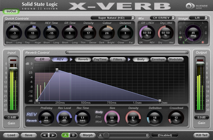 Некогда доступный только на платформе Duendo, SSL X-Verb теперь обзавёлся RTAS-версией после того, как SSL осознали, что решения, основанные на DSP имеют больше преимуществ, чем процессоры общего назначения. Тем лучше для нас, учитывая то, что плагины, разработанные известным производителем микшерных консолей, просто великолепны. SSL X-Verb – живое подтверждение этому. Основанный на запатентованных алгоритмах HiD, он предоставляет множество оригинальных функций, таких как морфинг двух различных типов реверберации, а также натуральную симуляцию пространств, независимую от их размера и типа. Большое количество функций определённо отпугнёт любителей простых интерфейсов. К тому же, цена плагина достаточно велика. ётся сказать, что люди, купившие SSL X-Verb, никогда не пожалеют об этом.