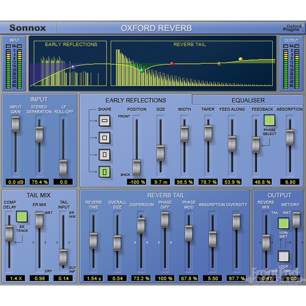 После участия в разработке знаменитой записывающей консоли Oxford OXF-R3, талантливые ребята из Sonox представили плагины Oxford, которые стали стандартом в индустрии. Среди них мы нашли ревербератор, который сочетает в себе качество и простоту с замечательным движком ранних отражений (многие могут посчитать это ключевым аспектом). Ожнако, цена $370 и $625 (за формат AAX) кажется немного великоватой, особенно для индустрии, которая так сильно развилась за последние несколько лет.