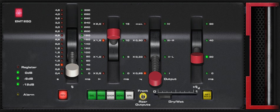 Происходя от известного Sonic Flavours R66, состоящего из замечательных модулей, спрограммированных Мартином Звартсом (Martijn Zwartjes) для NI Reactor (Rev-6 и Space Master), Redline Reverb полностью унаследовал персону своего предка (он даже может работать с пресетами R66) в абсолютно новом интерфейсе. Этот плагин выделяют две вещи: его уникальный алгоритм, способный создавать любой тип реверберации (для создания всех типов реверберации, будь то plate, hall и т.д, используется один и тот же алгоритм) и музыкальность его звучания. Со стороны параметров, Redline Reverb достаточно прост благодаря его с умом распределённому интерфейсу, который не гонится за сложностью: наиболее важные параметры самые большие, тогда как те, что поменьше, отвечают за мелкие детали. Этот плагин определённо соблазнит множество начинающих звукорежиссёров.