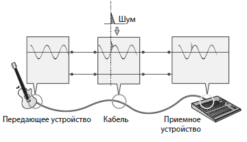 (*) Устройство DI (непосредственной инжекции) преобразует небалансные сигналы в балансные. Например, если при прямом подсоединении к микшеру электрогитары звук оказывается неплотным или зашумленным помехами, можно подсоединить между инструментом и микшером устройство DI, которое преобразует сигнал в балансный и устранит неплотное шумное звучание.
