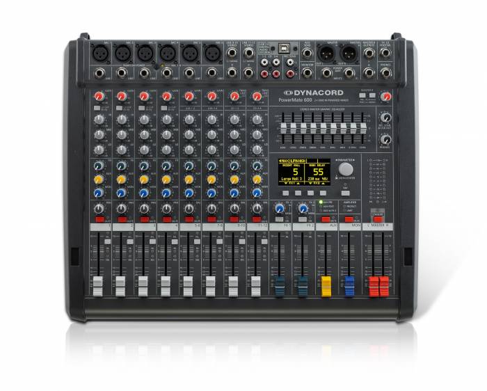 Dynacord PowerMate 600-3 12-ти канальный микшерный пульт с усилителем мощности 2x1000Вт встроенным процессором эффектов, мастер эквалайзером и USB портом