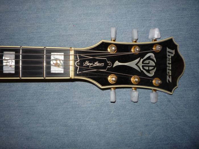 Полуакустическая гитара из подписной серии легендарного Джорджа Бенсона. Сделана в Японии в 1998 году. Корпус - ель (верхня дека) и клён (нижняя дека и боковины), цвет натуральный. Гриф из 3-х кусков клёна. Накладка и струнодержатель - чёрное дерево. Звукосниматели - 2 хамбакера Ibanez GB special. Управление: 2 громкости, 2 тембра, переключатель на 3 положения. Состояние отлчное, имеются незначительные потёртости. Доставка обсуждается. Возможен обмен на серьёзные инструменты, с вашей доплатой.