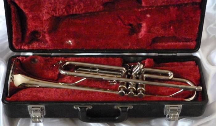 производство Япония. Модель ученическая, покрытие никель. Инструмент в рабочем состоянии, есть потертости и вмятинки  на корпусе. В комплекте жесткий футляр. Цена 8000 руб.