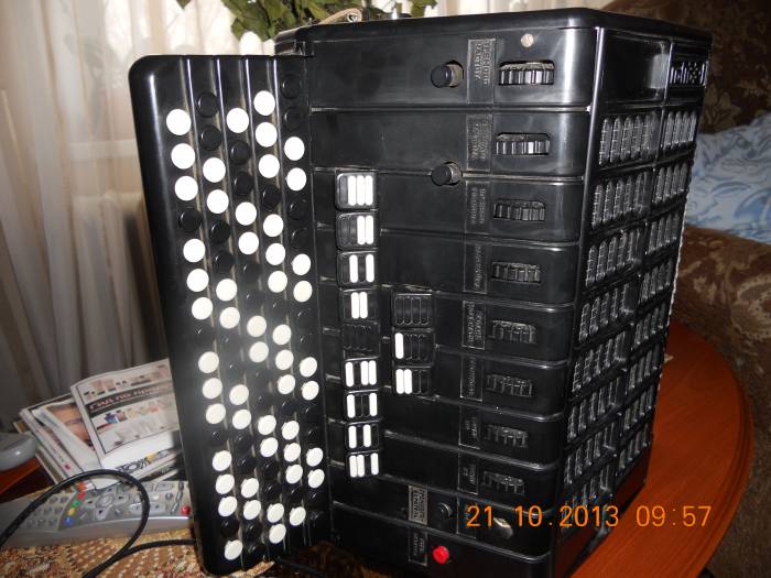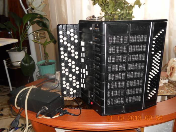 Продам пятирядный электронный баянТопаз-1. Предназначен для имитации звучания традиционного баяна,применяет регистровый метод синтеза для создания звуков таких инструментов как- орган флейта синтезированных тембров и др.имеет встроенный громкоговоритель с регулировкой уровня,имитацию движения мехом в левой клавиатуре,педаль управления громкостью.использует параметры :частота тремоло,вибрато,баланс клавиатур,громкость, тембр ВЧ,НЧ.Разъёмы-вход для педали,усилитель,наушники.Инструмент практически не использовался.