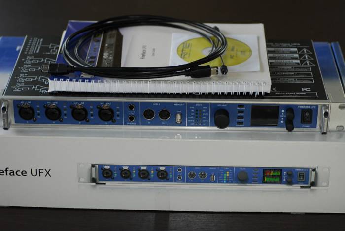 Продам аудиоинтерфейс RME Fireface UFX RME Fireface UFX - это новый 60-ти канальный аудиоинтерфейс от RME, который пополнил линейку USB и Firewire аудиоинтерфейсов. RME Fireface UFX является флагманом среди интерфейсов подобного типа. Подключение по USB и Firewire RME Fireface UFX предлагает пользователям абсолютную стабильность при использовании с любыми компьютерами MAC и PC. RME Fireface UFX обладает качественной аналоговой обвязкой в сочетании с высоким качеством чипов конвертера AD/DA. Все входы и выходы TRS & XLR балансные, включая два выхода для наушников, что гарантируют низкий уровень шумов и искажений. Также, все входы и выходы RME Fireface UFX поддерживают 192 kHz и достигают динамического диапазона в 118 dBA (включая выходы на наушники). Технология, которая используется на входах UFX базируется на высококачаственных преобразователях используемых в флагманской модели ADI-8 QS. Цифро-аналоговая секция базируется на преобразователях M-серии. Таким образом, AD/DA преобразование гарантирует прекрасное качество звука. Для удобного использования огромных возможностей аудиоинтерфейса RME Fireface UFX, компания RME встроила цветной дисплей с высоким разрешением на передней панели. Новый дисплей в сочетании с тремя энкодерами на передней панели позволяют полностью управлять всеми функциями RME Fireface UFX без использования компьютера.