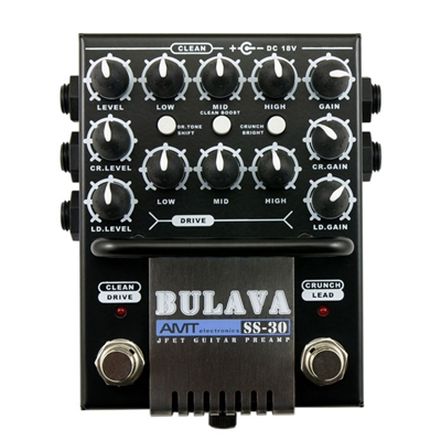 AMT Electronics SS-30 - новейшая разработка инженеров АМТ, полностью оригинальный 3х-канальный гитарный предусилитель, использующий усовершенствованную технологию моделирования лампового перегруза на полевых транзисторах (JFET-моделирование), имеющий очень гибкие настройки и позволяющий настроить звук практически для любого стиля музыки. Прибор предоставляет возможность одновременного и раздельного использования двух выходов: в линию Mix консоли и в разрыв усилителя (RETURN).
