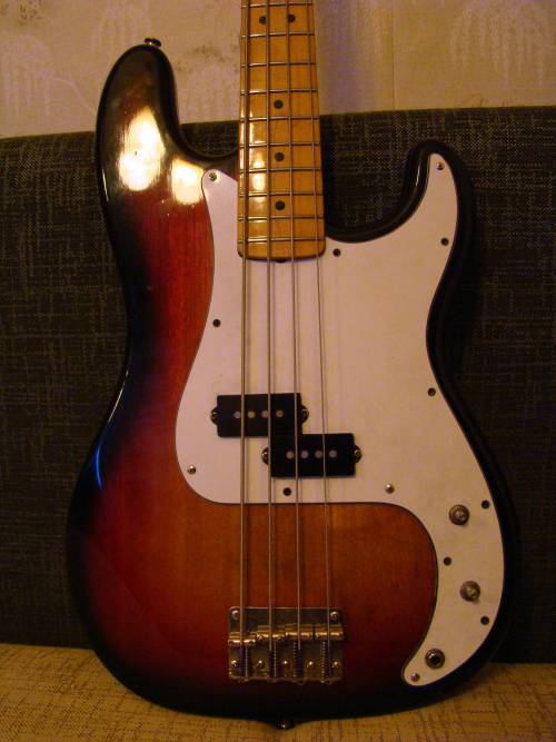 Перепаяна и заэкранирована электроника, заменен порожек, отстроен гриф. Состояние отличное!