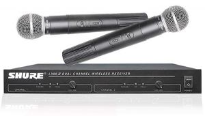 Это двухканальная беспроводная микрофонная  система в приемнике размером в одну рэковую высоту, отлично подходит для диджеев и караоке