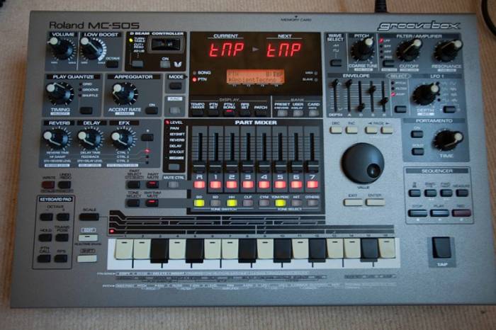 Есть светочувствительный контроллер D-Beam . Размахивание руками (или другими частями тела) над модулем может производить модуляцию, глиссандо, изменение частоты среза или резонанса фильтра и т. д. Кроме того, практически все манипуляции с MC 505 передаются и записываются посредством MIDI.