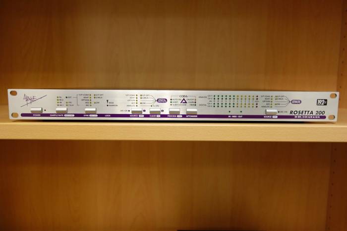 Двухканальный блок аналого-цифровых и цифро-аналоговых преобразователей Rosetta 200 поддерживает частоты дискретизации от 44,1 до 192 кГц, разрядность до 24 бит. Есть встроенные лимитеры и набор мастеринговой обработки CODA, в который входят функция Aptomizer (автоматическая установка оптимального уровня аналоговых входов и выходов), высококачественный алгоритм преобразования частоты дискретизации и функция понижение разрядности с дизерингом по алгоритму UV22HR.