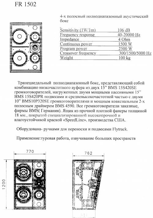 BMS 15S420PR подвесами и средневысокочастотной частью с двумя
