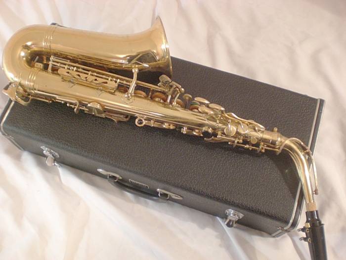 Привезён из Японии.. История этих саксофонов, почерпнутая с различных источников такова – первые свои саксофоны японская компания Splendor выпускала в Японии примерно до 70х годов прошлого столетия.. Фирма выбрала самый короткий и на первый взгляд результативный путь – полностью скопировала дизайн , механику и пропорции с легендарного француза Selmer MARK VI – неоспоримого лидера саксофонов тогда, да и сейчас.. Даже логотип на эске практически полностью повторял сельмеровский фирменный знак.. Благодаря этому было достигнуто достойное звучание.. Всё закончилось так, как и должно было закончиться – Сельмер выиграл суд, компания Splendor вынуждена была изменить кое что во внешнем виде инструментов и из за возникших в связи с этими событиями убытков , перенести производство в Тайвань.. К этому времени хороший звук был наработан, инструменты имеют очень лестные отзывы музыкантов разного уровня..