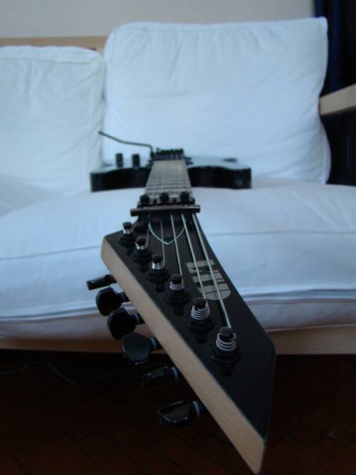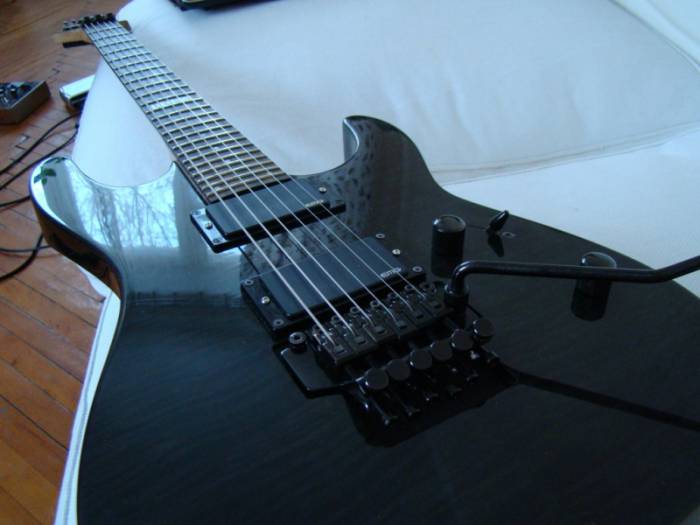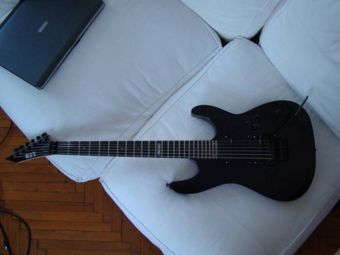 Гитара LTD by ESP M100FM, производство индонезия. В свое время доводилась мастером(выравнивание накладки грифа, отстройка)установлены активные звукосниматели EMG из комплекта Zack Wylde(81,85). Инструмент в хорошем состоянии как внешне, так и функционально. Отлично держит строй. Звук не хуже чем на дорогих инструментах. Сейчас гитара отстроена для пониженного строя и стоят достаточно толстые струны(ERNIE BALL 12)