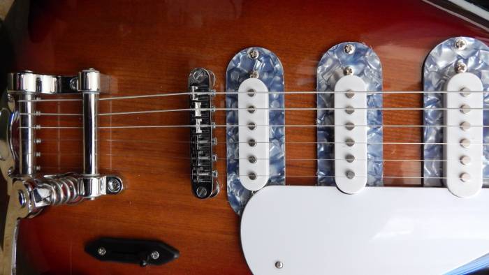 Все 3 катушки тщательно подобраны,5-и канальный селектор,2 ручки тона и одна громкость.Стиль Бигсби Тремоло(что и установлено на гитаре).